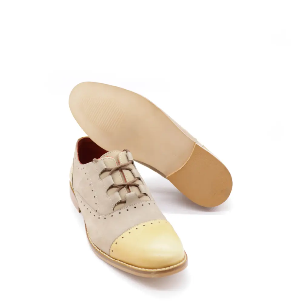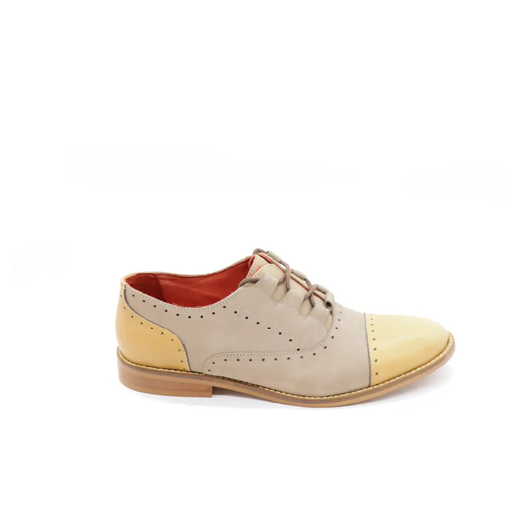 Los zapatos oxford naranja tostado mujer modelo AG Dama 11 destacan por su diseño sofisticado y su combinación de colores modernos: nubuck atmósfera y naranja tostado. Este calzado artesanal está pensado para mujeres que buscan una pieza versátil, elegante y original, perfecta para el día a día o eventos más formales.