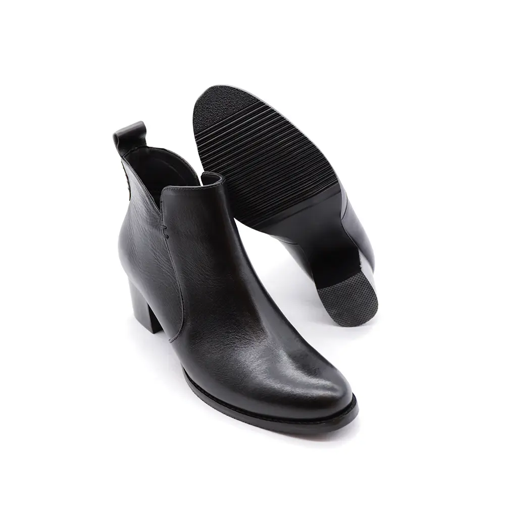 Los botines negros mujer con tacón Catleya 513 de Adriano son la combinación ideal entre elegancia y practicidad. Diseñados para mujeres que buscan un calzado versátil y moderno, este modelo destaca por su acabado en cuero gala negro, aportando un brillo sutil que eleva cualquier look.
