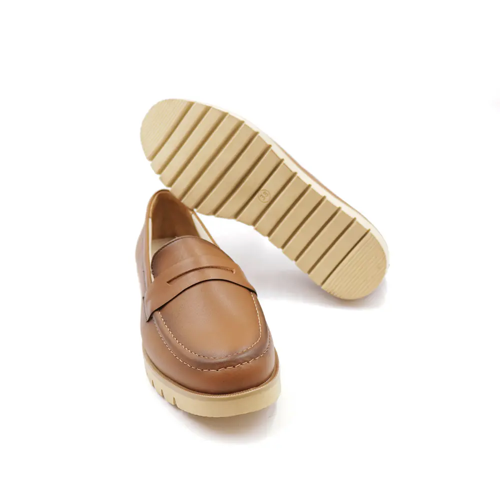 Gracias a su tono miel, estos loafers se adaptan con facilidad a diferentes estilos y colores, convirtiéndose en una pieza versátil que combina perfectamente con pantalones de vestir, jeans o faldas. La textura de la napa les da un acabado suave y refinado, ideal para ambientes de trabajo, reuniones o salidas casuales.