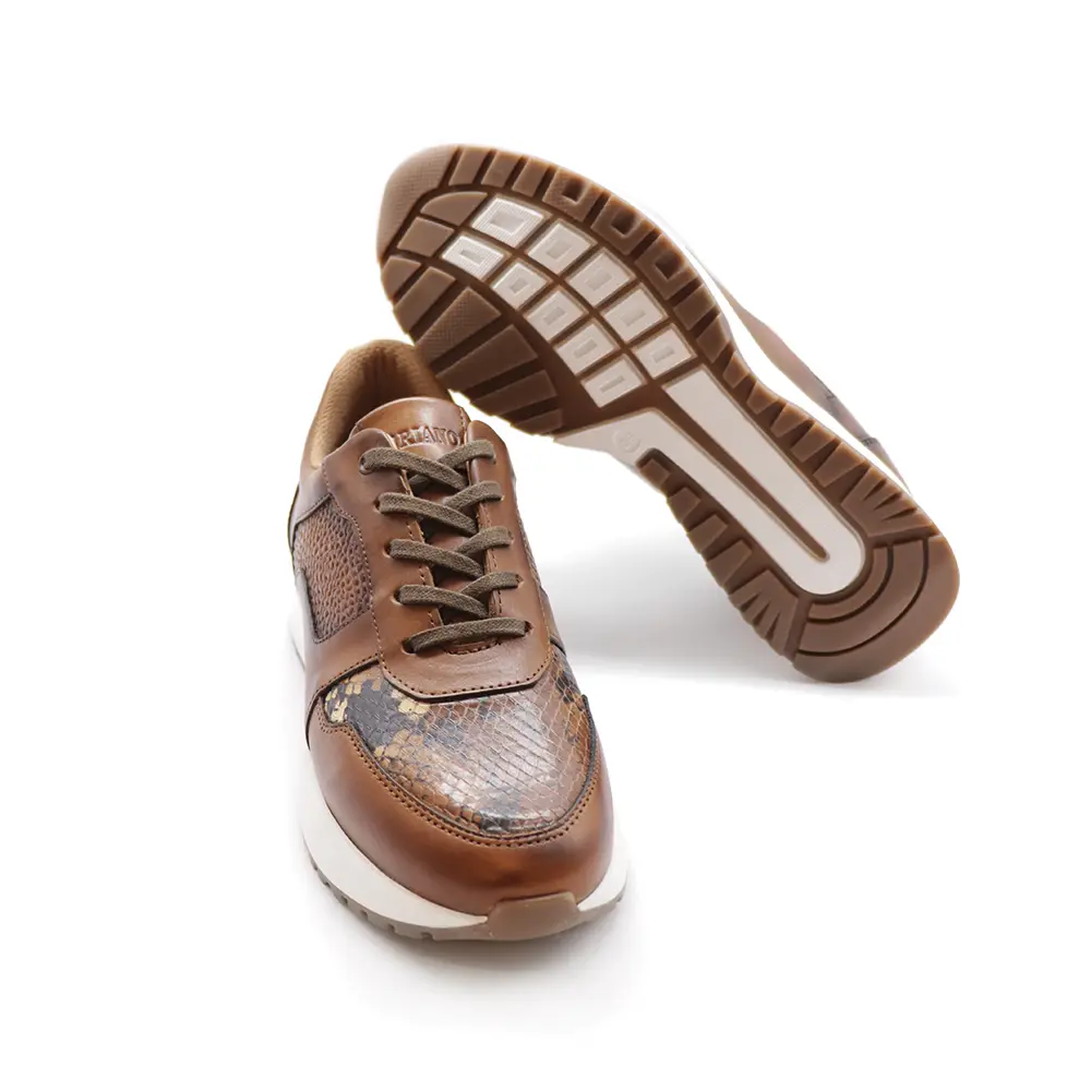 Los sneakers de mujer caoba Adriano URBN 17 fusionan estilo urbano, diseño audaz y comodidad funcional en un solo modelo. Confeccionados en tonos caoba y café, e incorporando detalles con textura serpiente, estos sneakers están pensados para mujeres que buscan destacar con autenticidad y fuerza en cada paso.